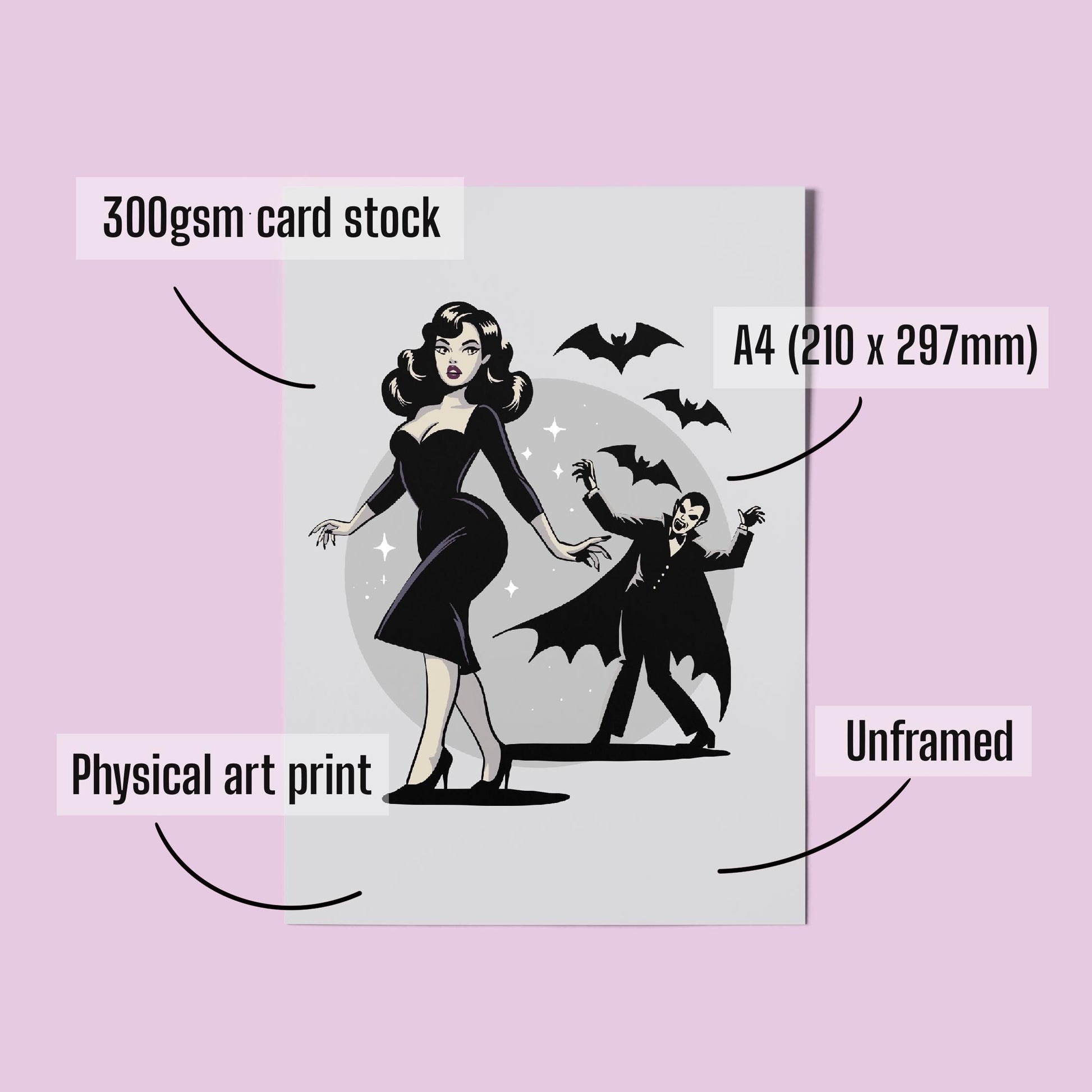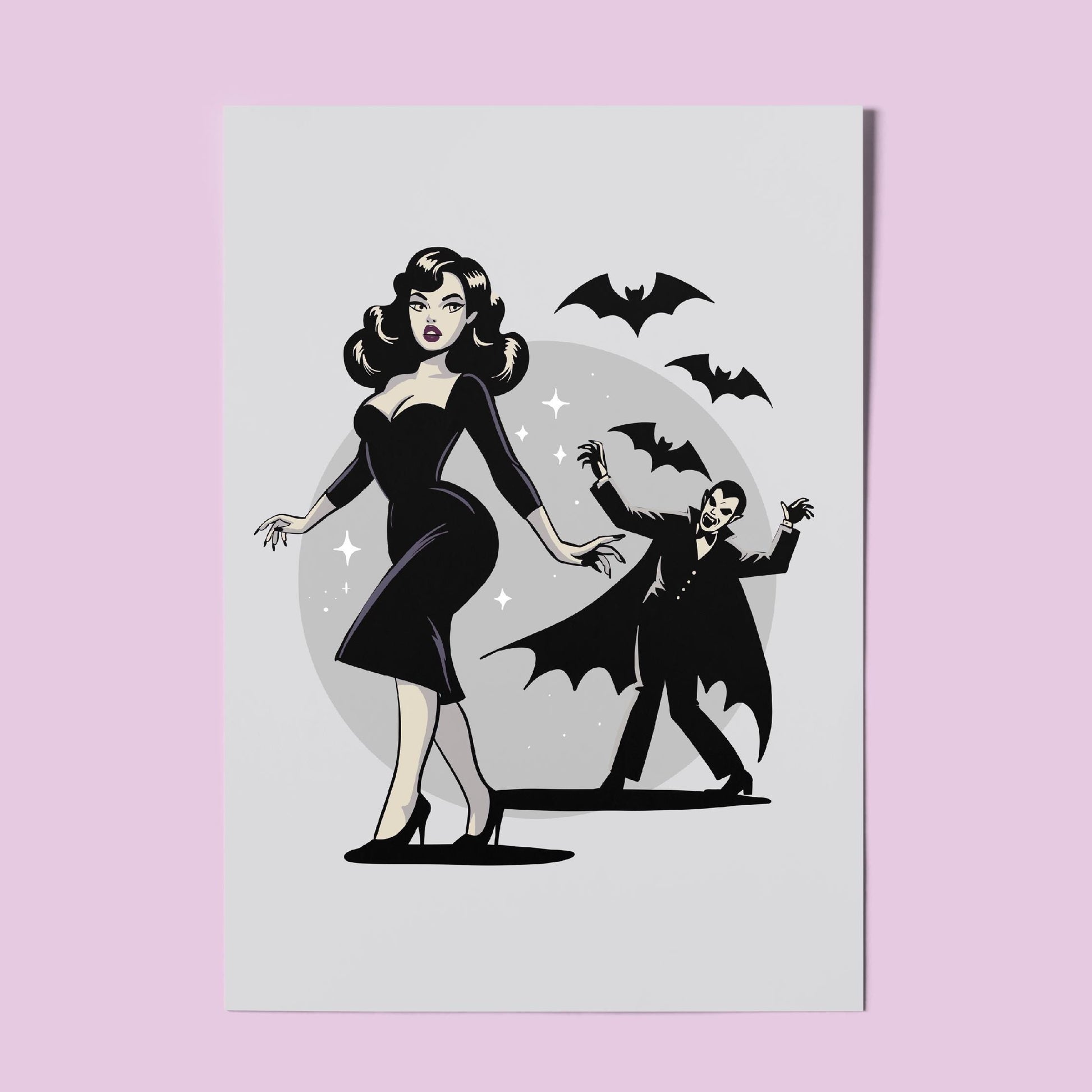 B-Movie Pinup A4 Art Print “Vampire Stalker” – Alt Vintage Pinup Wall Art