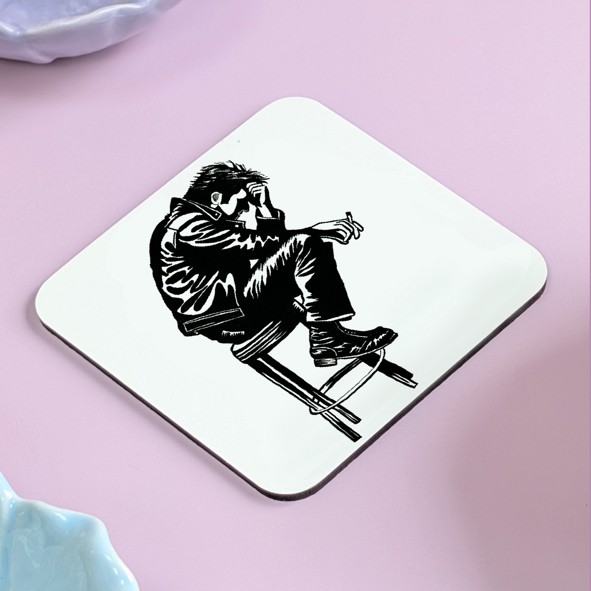 “The Weight of It” Coaster – Hand Drawn Illustration of a Man in Quiet Despair