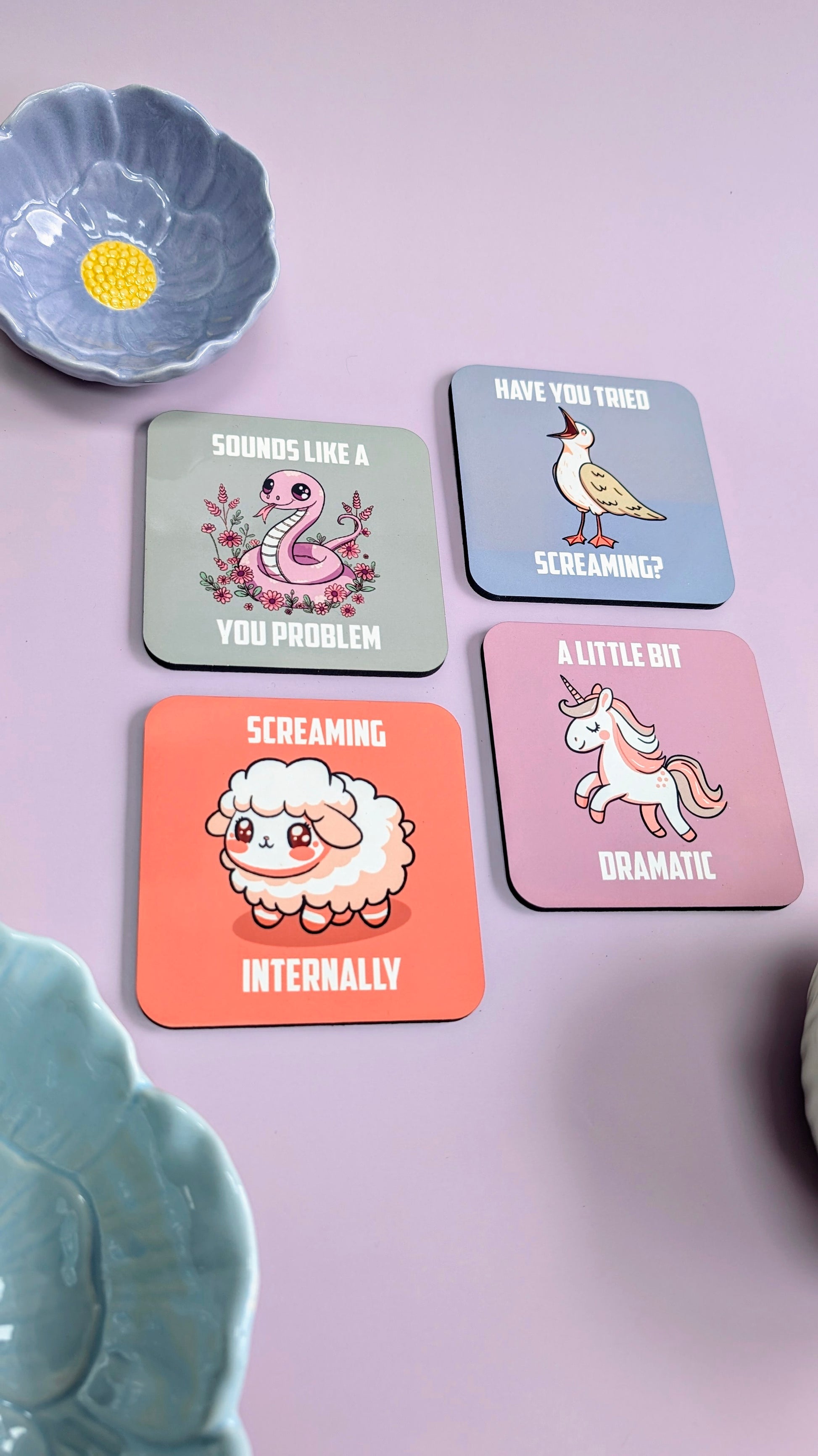Featuring a smug little snake with a cheeky tongue poke and zero interest in your chaos, this “Sounds Like a You Problem” coaster is the ultimate desk-side mood. Digitally illustrated with bold lines and attitude to spare, it’s the perfect daily reminder to set boundaries and sip your tea (literally and metaphorically).