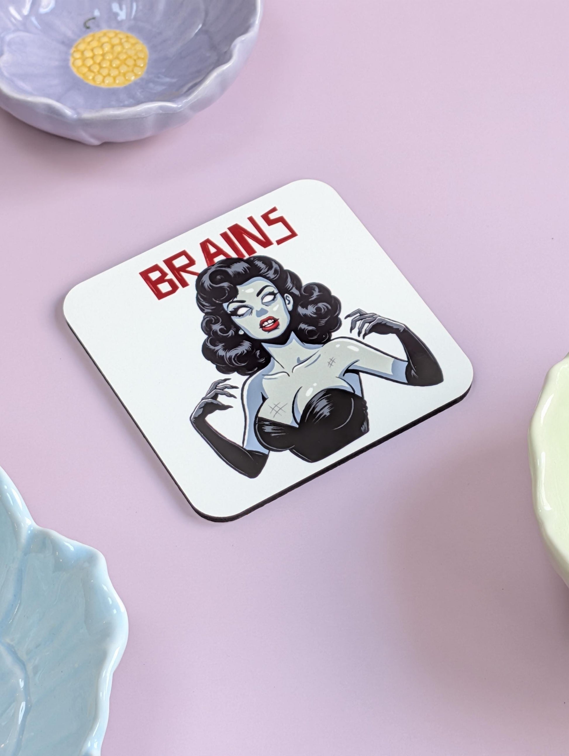 Zombie Pinup BRAINS Coaster – Retro Horror Meets Quirky Pinup Style